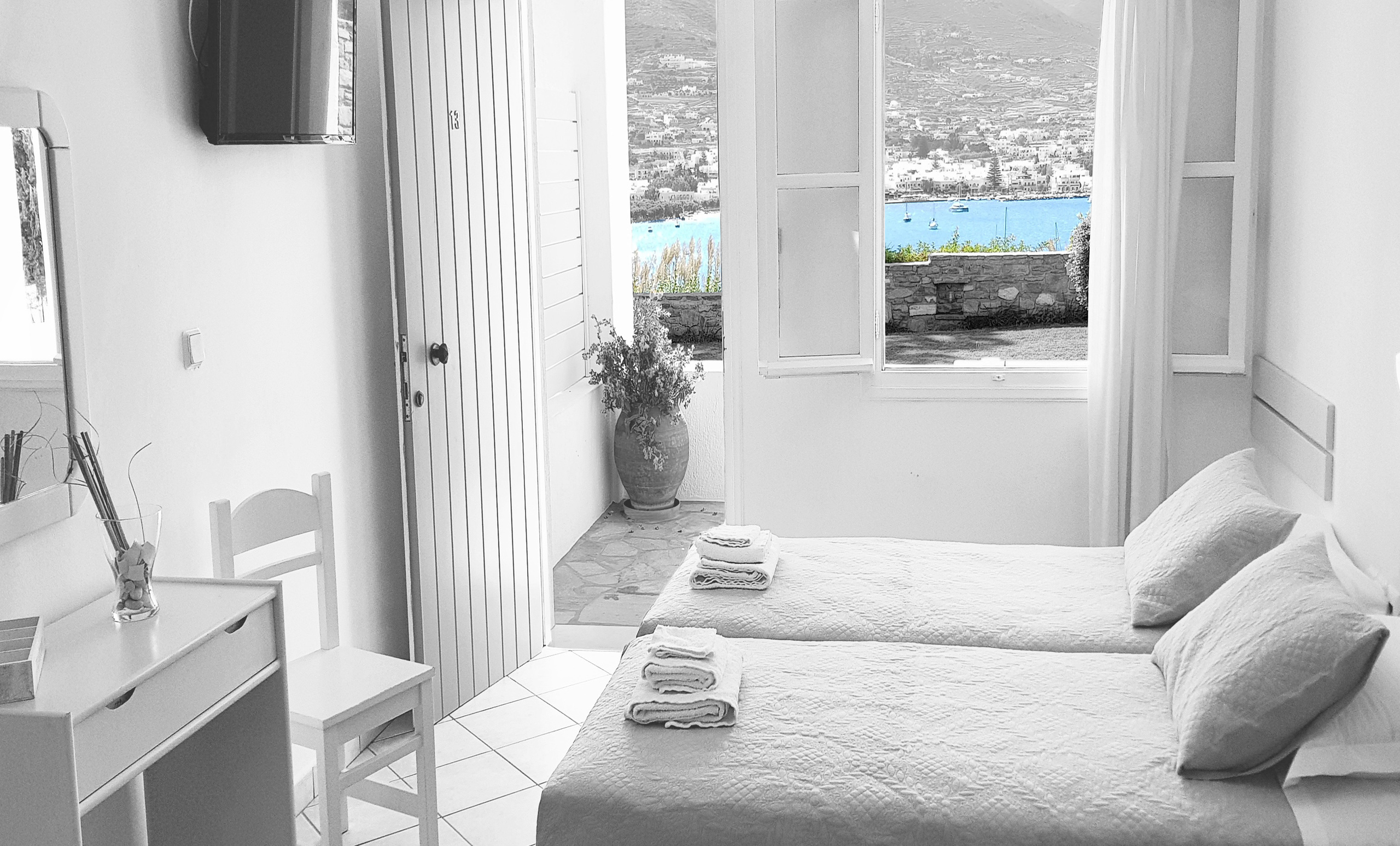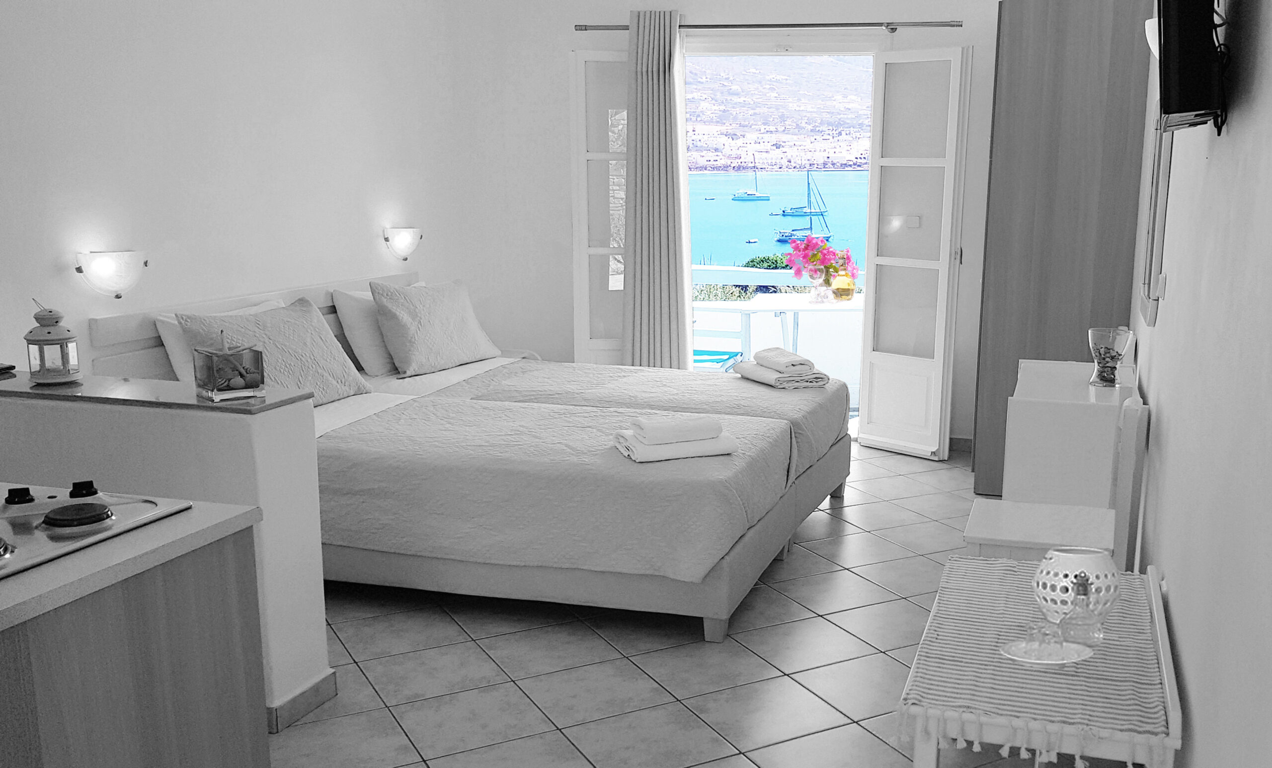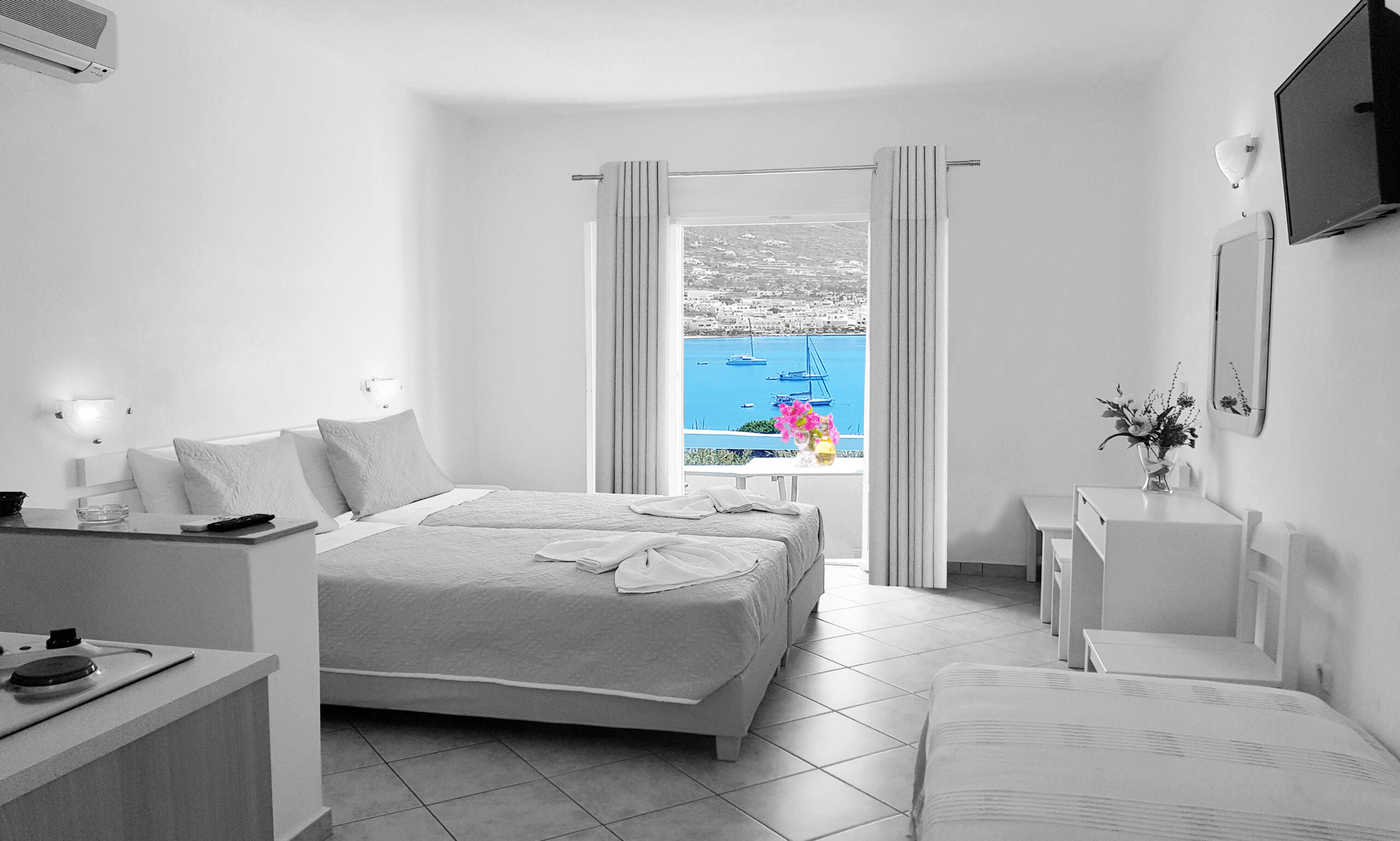 Featuring Aegean Sea views, this Junior Suite opens to a spacious, furnished veranda. It's on the 2nd floor and has a seating area with satellite TV and a fully equipped kitchenette. A hairdryer and a safe box are included.